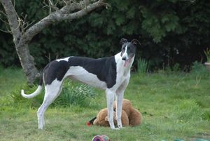 We discovered, despite Purdys lack of experience in the outside world, she was a gentle happy hound who was friendly towards people, children all other dogs and even cats, nothing had broken her spirit to enjoy life.