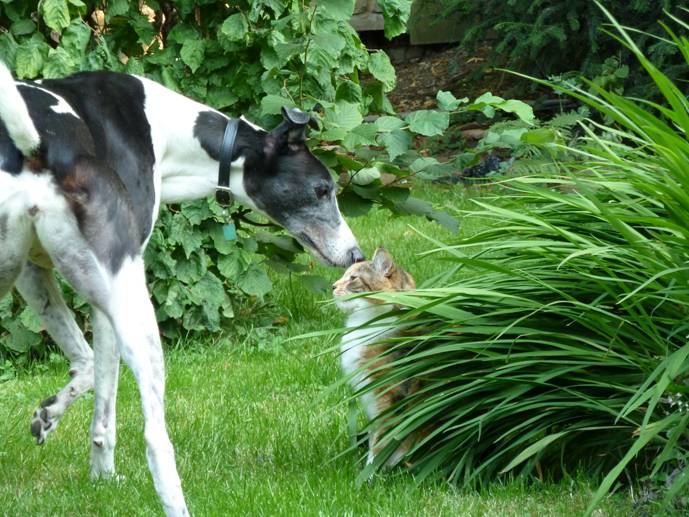 Purdy was thrilled to be with another dog and a big garden to explore and run around in.