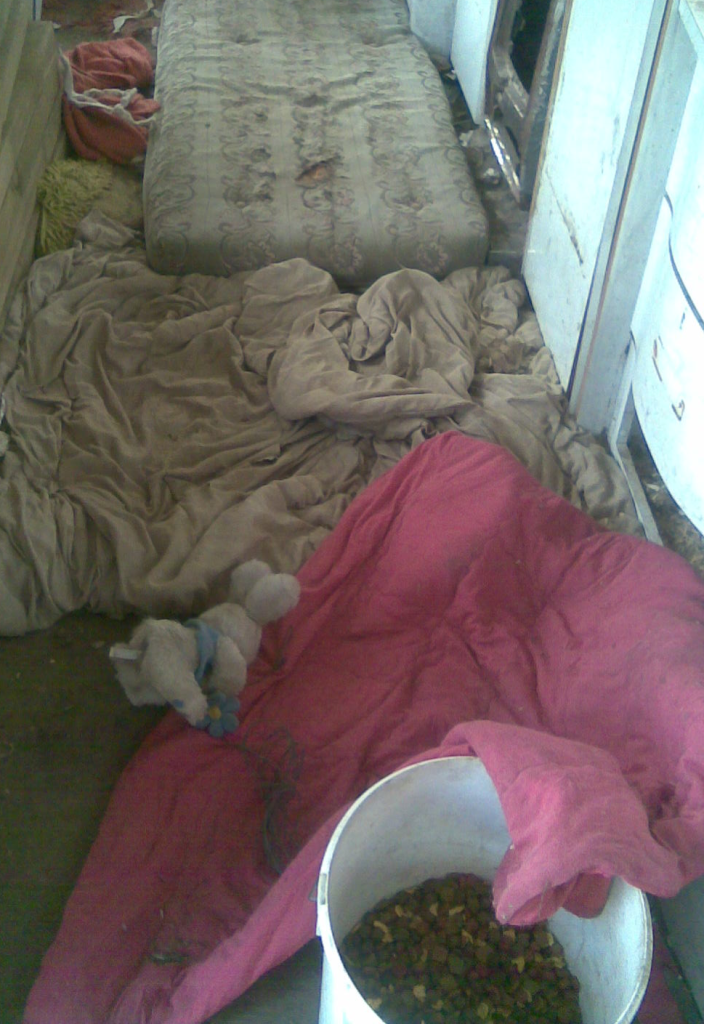 Photos below show the dilapidated caravan Belle was kept in, believed to be for many years and given birth to several litters (we cannot imagine what happened to all her pups).