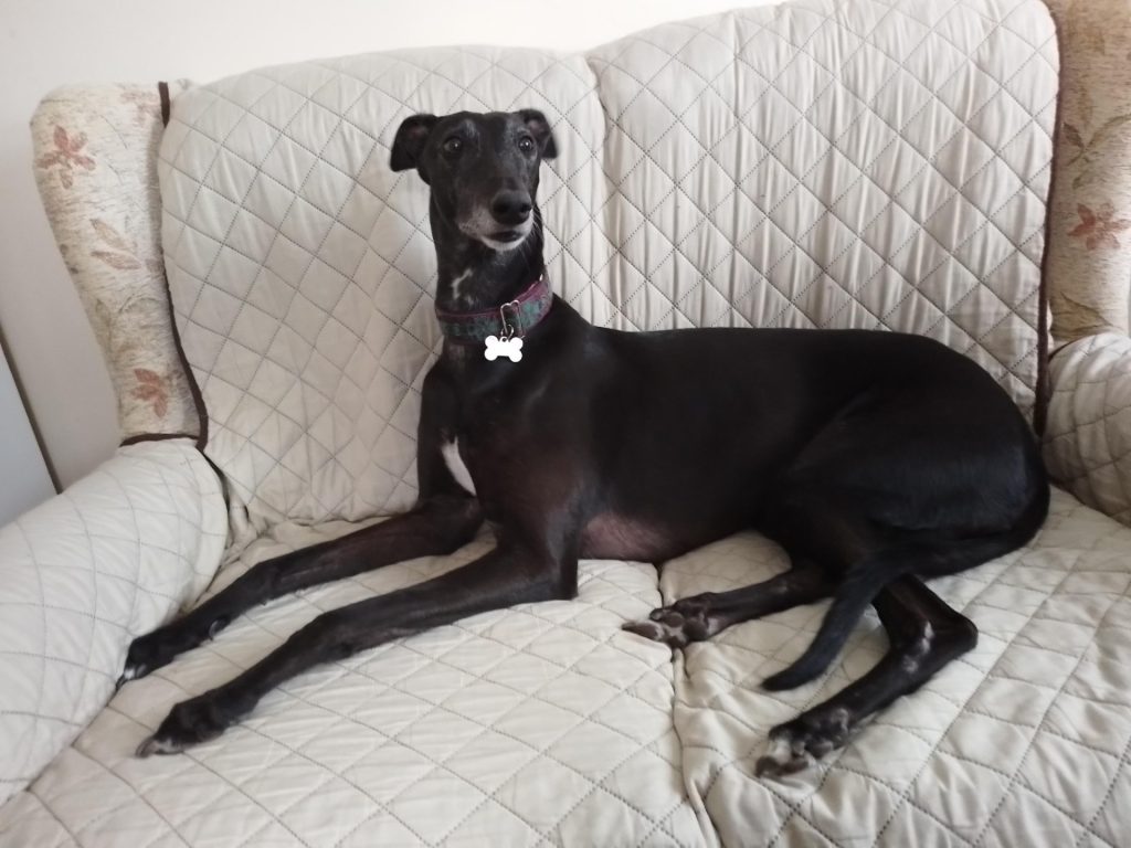 She met up with another rescued Greyhound, who she was to share her home